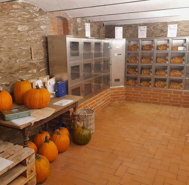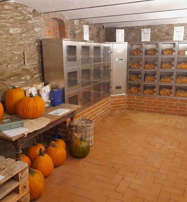 Erhalten Sie selbst angebaute Kartoffeln direkt von unserem Kartoffelautomaten 'Knollo' auf dem Hof.